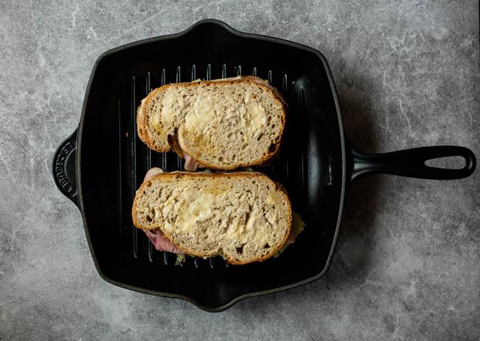 - Legg skivene sammen og smør utsiden av hvert ostesmørbrød med et godt lag smør.