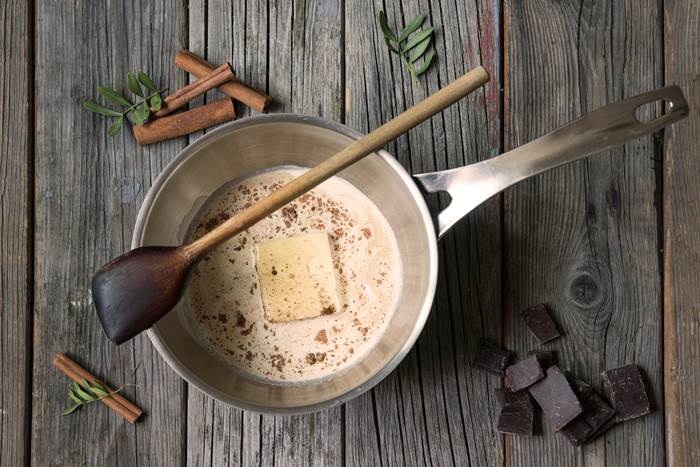 - Bland fløte, smør, melis, sirup og krydder i en kasserolle, og kok opp.